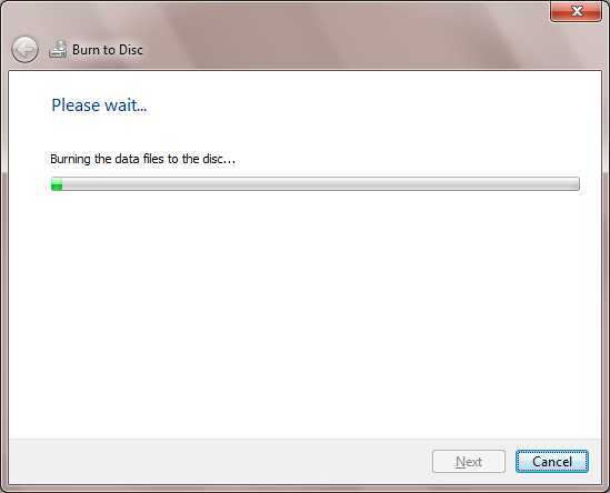 The progress bar will keep you apprised of the status of the burn operation.
